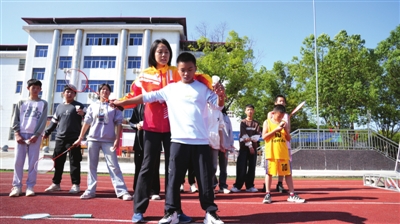 分享活动结束后,赵芸蕾向学生们现场演示了规范标准的羽毛球发球姿势,并手把手地矫正学生们的动作。她平易近人的风度和耐心的教学,受到了学生们的热捧,学生们纷纷找她合影或签名。