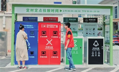 中端实施撤桶并点活动,将城区主干道临街面的勾臂箱、板车全部撤除,探索推行“定时定点”分类投放制度,持续开展生活垃圾分类投放点升级改造工作,建设有地面硬底化、有照明、有遮雨、有下水、有洗手的“五有”垃圾分类投放亭(屋),方便居民投放。市城区累计升级改造生活垃圾分类投放点1204个。