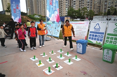 在“文明集市”里,居民或围坐在普法宣传展位,倾听《中华人民共和国爱国主义教育法》,写下对祖国的美好祝福;或在垃圾分类体验区玩起互动小游戏,学习了解我市自今年5月1日起施行的《咸宁市城市生活垃圾分类管理办法》。