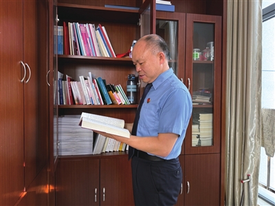 方金标非“科班”出身,26岁时通过全省法检系统增编补员考试,考入通城县检察院工作。爱看书,喜钻研的他办公桌上除了一摞摞案卷,就是各类法学书籍。28年磨炼,他从助理检察员到经验丰富的四级高级检察官,靠的是平时对每起案件的潜心钻研、每份笔录的潜心琢磨、每次庭审的充足应对。