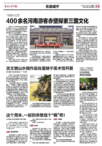 本报讯 (记者陈婧 通讯员黄骞婵 熊丽) 10月26日,三国赤壁古战场景区迎来了今年首趟跨省旅游专列,400余名河南的游客欢聚我市,探索三国赤壁历史文化的独特魅力。