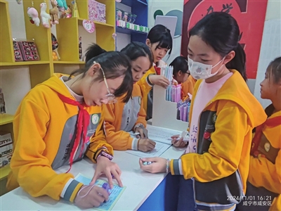 “我的积分不够,多攒点来换个‘大礼物’。”“我能看看那个粘土吗?”“这些笔好漂亮呀”……