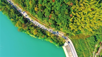 11月3日,无人机镜头下的咸赵线大泉口段秋色如画,美不胜收。据了解,近年来,我市以推动“四好农村路”建设为契机,将农村公路建设与发展乡村旅游、美丽乡村相结合,建设了一批产业致富路、生态旅游路,营造出“人在车中坐、车在画中游”的公路出行体验。