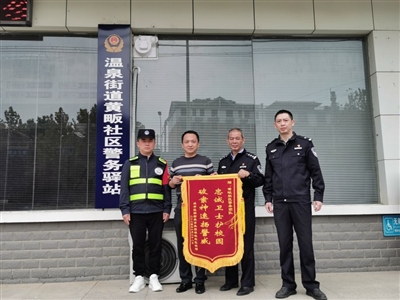 本报讯 (记者陈志茹 通讯员周永高 邵诗玄) 11月4日,咸安区实验学校教育集团银桂校区政教处主任陈志华来到温泉街道黄畈社区警务驿站,向社区警务团队赠送一面写有“忠诚卫士护校园 破案神速扬警威”的锦旗,表达对社区“义警”的感激之情。