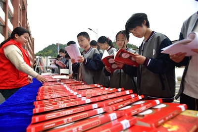 11月15日,咸安区桂花镇何功伟中学操场上,学生们在流动图书摊前挑选图书阅读。据了解,当天,区图书馆流动图书车开进该校校园,供学生们阅读,同时还向校方捐赠了图书。活动旨在培养学生们的阅读兴趣,弘扬中华优秀传统文化。