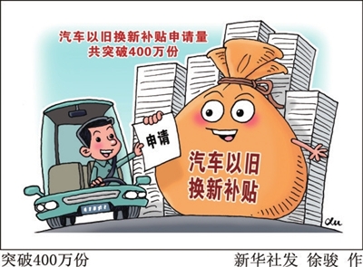 新华网消息 商务部19日发布数据显示,截至11月18日24时,全国汽车报废更新和置换更新补贴申请均突破200万份,合计超过400万份。