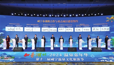 启动仪式上,与会旅行商代表与省内温泉景区集中签订采购协议。43个咸宁市亿元以上招商引资项目现场集中签约,合同金额总计303.6亿元。