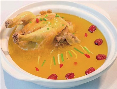 近日,走进咸安区贺胜桥镇,不少外地车辆停在107国道旁的鸡汤馆,游客专程来此品尝贺胜鸡汤。“旺季时,一天能卖出上千只鸡。”开鸡汤馆40余年的周桂云说。