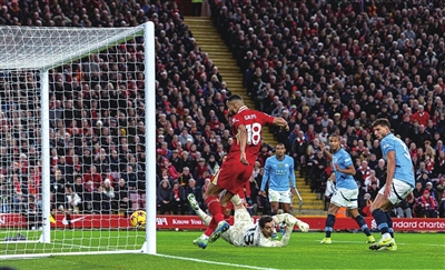 坐镇主场的“领头羊”利物浦全场占据主动。第11分钟,范迪克的头球击中门柱弹出,曼城躲过一劫。主队1分钟后长传策动反击,萨拉赫禁区右肋横传,加克波后点包抄得手。