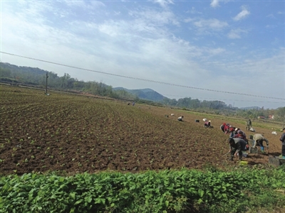 当日记者在现场看到,村民们分散在田间,他们或蹲或跪,俯身躬耕,双手熟练地操作着,将一株株包菜苗植入泥土中。不一会儿,一片片新绿便整齐地挺立在田间,孕育着来年丰收的希望。