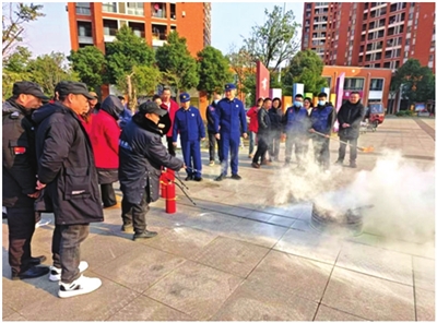 咸宁高新区消防支队为大家讲解冬季火灾的扑救、灭火、消防常识等注意事项,随后消防员演示了灭火器的使用,并邀请物业工作人员和小区群众现场模拟了灭火器灭火。
