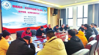 本报讯(记者 李思源 通讯员 胡志诚 丁鹏) 为促进城乡教育均衡发展,日前,通城三中邀请鄂南高中和湖北省名师工作室成员到该校开展主题为“送教共研促成长,教育均衡谱新篇”的送教共研交流活动,鄂南高中副校长陈斌、咸宁市知联会副会长朱旋农、楚天名师沈文炳及通城县教师代表等一百余人参会。