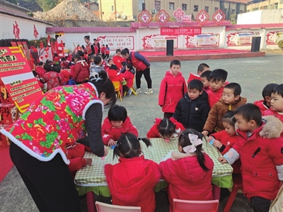 “新年钟声想起来,深深拥抱你的爱……”当天上午,伴随着歌曲《新年钟声响起来》,活动拉开了序幕。民俗活动体验区,书法老师挥毫泼墨,孩子们也拿起毛笔,有模有样地书写,感受汉字魅力;剪窗花摊位前,一双双小手在彩纸间穿梭,剪出形态各异的图案。