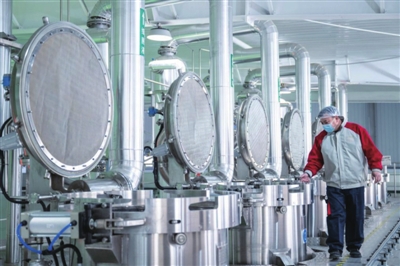 1月10日,华彬桂花深加工生产基地工作人员巡查鲜桂花上料情况。