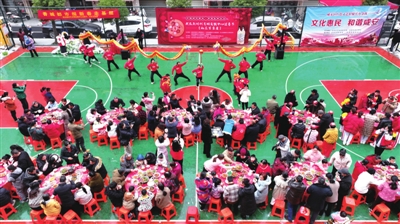 一场百家宴,共叙邻里情。1月14日上午,“我在新时代文明实践中心过春节”社区百家宴首场活动在咸安区永安街道三元社区兴旺家园小区热闹开席,100户居民代表围坐一起吃百家宴、赏文艺表演,共享老旧小区改造成果,共品“幸福味”。