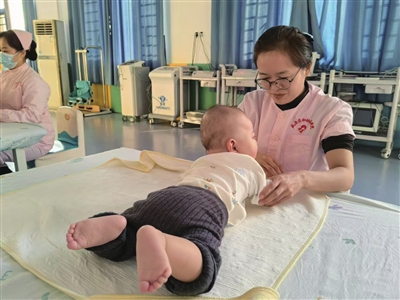 在该科,康复治疗师们创新采用功能训练、医教结合为主要特色的综合儿保康复治疗,为孤独症、语言发育迟缓、智力发育障碍等神经发育障碍性疾病的儿童及家庭提供康复训练和指导。如,针对患儿的异常姿势和运动障碍,他们会进行针对性的纠正训练,如翻身训练、爬行训练、坐位训练、站立训练、步行训练以及感知训练等,帮助这些特殊儿童得到早期个体化教育,建立正常功能,从而回归家庭及社会。