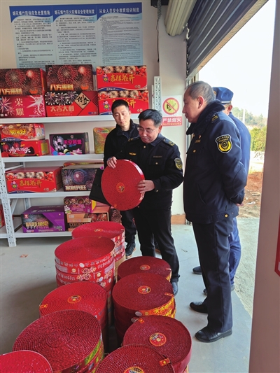 接着,从1月20日开始,该区应急管理局“牵手”咸安区公安局、区市场监督管理局、区消防大队和各乡镇等部门单位,成立了30人的整治工作专班,分成5个烟花爆竹“打非治违”联合执法检查组,对全区所有烟花爆竹零售企业和涉嫌非法储存、经营烟花爆竹的商超、门店开展为期3天的执法检查行动。主要检查零售场所是否与居民居住场所在同一建筑物内,是否在零售场所内设置床铺,是否配备符合要求的消防器材,是否存在“前店后它”“下店上宅”、超量储存等违规违法问题。