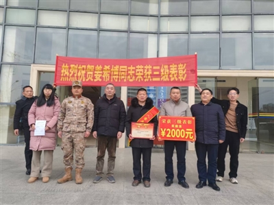 1月23日(农历小年),崇阳县退役军人事务局、县人武部、各相关乡镇退役军人服务站组成慰问小组,协同解放军东部战区某部代表和湖北省拥军优属先进个人张日平共同为8名荣立三等功的现役军人家庭送喜报上门。2月8日(正月十一),慰问组再次前往天城镇等乡镇,为8名现役军人家属送去立功喜报和奖励金。热闹又简朴的仪式,为新春佳节增添一份节日的喜庆。