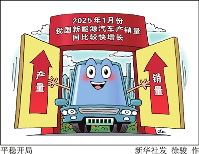 新华网消息 中国汽车工业协会17日公布数据显示,2025年1月,我国新能源汽车产销量分别达101.5万辆和94.4万辆,同比分别增长29%和29.4%,新能源汽车新车销量达到汽车新车总销量的38.9%。