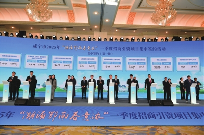 潮涌鄂南春意浓,招商引资势如虹。2月18日上午,咸宁市2025年一季度招商引资项目集中签约活动举行。(记者 张仰强)