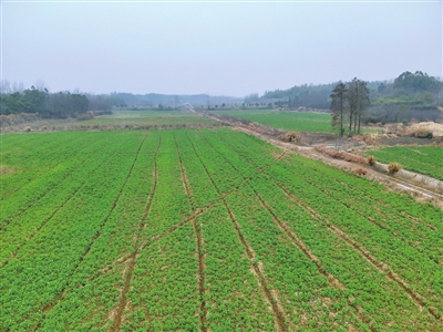 2月23日,当清晨的第一缕阳光洒在嘉鱼县高铁岭镇的田野上,该镇西海村西海畈一片绿意盎然便映入眼帘。曾经零散的耕地,如今已整合成1900亩田成方、路相通、渠相连的高标准农田,其中,800亩油菜像是大地新披上的整齐绿装,待油菜收割后,这些农田将种上水稻,实现一年两熟。这片土地的蜕变,源于高铁岭镇政府一次关键的招商引资行动。