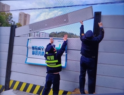 近日,咸安区城市管理执法局综合执法三室的三名执法队员如往常一样在辖区巡查。当巡查至永安大道格曼酒店时,他们敏锐发现周边围挡存在垮塌现象,不仅影响市容,更影响行人安全通行。执法队员迅速行动,扶正围挡、恢复原状、检查固定情况……