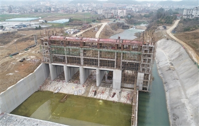 2月24日,记者在咸安区马桥拦河闸除险加固工程现场看到,目前项目主体工程即将完工。
