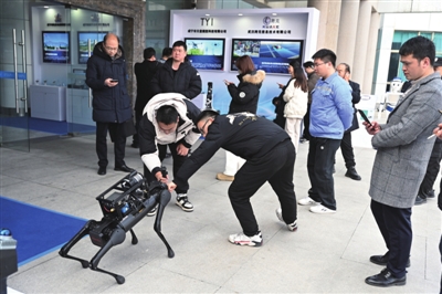 2月26日,全市科技创新大会在市会议中心召开,我市一批科技创新成果亮相一楼大厅,炫酷科技感扑面而来,吸引众多与会人员互动体验,感受科技脉动。 (记者杜培清赵忠志)