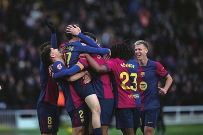 本报综合消息 2024-2025赛季西班牙足球甲级联赛第26轮2日继续展开,巴塞罗那队在主场以4:0击败皇家社会队,登顶联赛榜首。