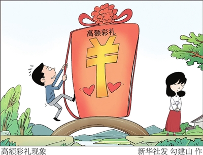 看到最高人民法院工作报告关注高额彩礼问题,一些受访代表委员颇有感触地说,家乡的亲友、乡邻对结婚彩礼过高也是啧有烦言。在有的地方,彩礼动辄十几万元甚至更高。