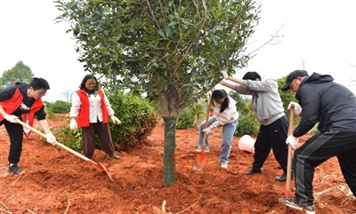 本报讯(记者 庞赟 通讯员 刘颖)3月8日,第47个植树节来临之际,团市委、市林业局、市外事办、市消防救援支队、国网咸宁供电公司、湖北科技学院团委联合开展了“青春绿动”植树造林青年志愿服务活动。20组志愿者家庭及百余名红领巾志愿者、青年志愿者挥锹培土、播种新绿,以“志愿红”守护“生态绿”。