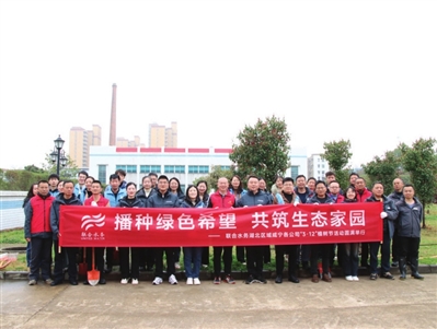 为响应国家关于生态文明建设与可持续发展的重要号召,加强企业员工的环保意识,助力精神文明建设迈向新高度,3月11日下午,联合水务湖北区域咸宁各公司管委会代表、党员代表、工会代表和各职能模块新晋青年员工代表组成环保志愿团队,在潘湾水厂开展了以“播种绿色希望,共筑生态家园”为主题的义务植树活动。