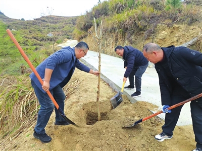 自2021年以来,驻村工作队已连续三年在植树节前开展植树活动,已栽种桂花、紫薇花等各类树木近500棵,既绿化美化了环境,也为乡村全面振兴增添了别样的“风景线”。
