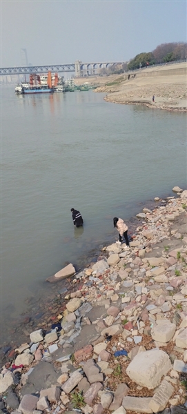 3月7日,星期五,下午2时许,武汉市武昌区黄花矶江滩,风平浪静,艳阳高照,正是适合游玩的好时间。
