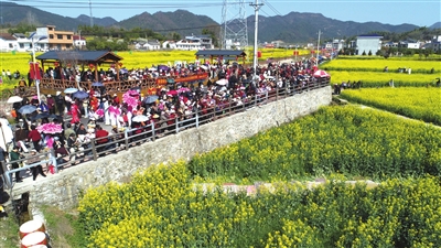 杨狮坑村党支部书记余月来介绍,杨狮坑村油菜花文化旅游活动每年吸引游客量8万人次,带动农户户均增收2000元。