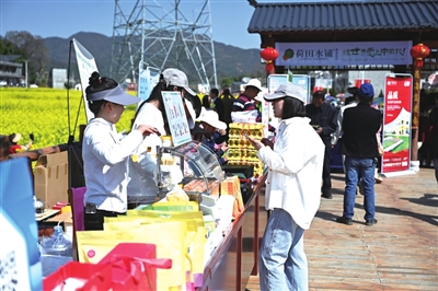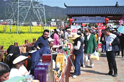 除了赏花,现场还有民俗歌舞表演,传统木雕、精美刺绣技艺展示,自助烧烤、围炉煮茶、农特产品展销等丰富的活动。“带着露水的野菜、绿色土鸡蛋不到正午就卖完了。”花海入口处,销售农产品的村民夏大姐擦拭着竹编簸箕笑道,眼角笑纹里盛满春光。周边的农家乐里,土腊肉在柴火灶台上的铁锅里滋滋作响,味道让过往游客赞不绝口。