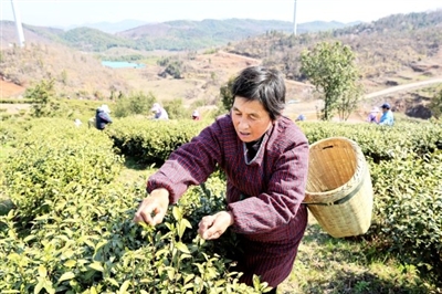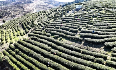 在咸安区大幕乡白云山之巅,400亩高山茶园宛如翠玉镶嵌于云雾缭绕间。晨曦微露,70余名采茶工人穿梭于碧绿茶垄,加紧采摘珍贵的首批明前春茶。