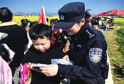 “小朋友们,不要轻易相信陌生电话和信息,不要向陌生人透露自己及家人的身份信息、存款、银行账号哦。”?“大妈,如果您遇到有人突然要求转账汇款,不管对方说得多么天花乱坠,您可一定要多留个心眼儿。现在的诈骗手段层出不穷,让人防不胜防……”穿梭于花海间,民辅警们还反复提醒游客警惕各类诈骗手段,并结合近期发生的典型案例,向游客详细讲解电信诈骗的常见手段和防范方法,让游客在欣赏美景的同时,也能增强自我保护意识。