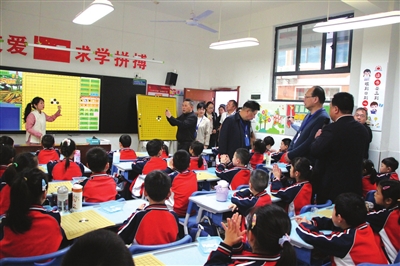 3月27日,湖北省学校体育卫生与艺术教育工作专题培训班一行在湖北省教育厅体卫艺处处长丁雪峰的带领下,走进咸宁市实验小学参观,实地了解该校在体卫艺方面的办学特色。