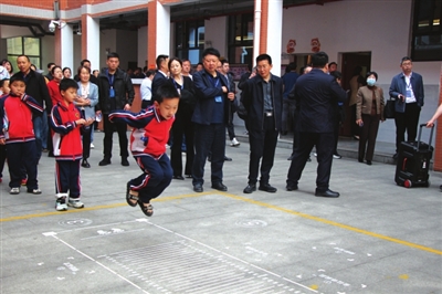 就连课间15分钟,孩子们的活动也是精彩纷呈,他们或在彩绘地面上玩起“二十四节气跳房子”,或进行防溺水知识垃圾分类飞行棋、英语跳棋的趣味关卡,就连跳远也被设计成了钢琴琴键的形状……五彩斑斓的地面图案,仿佛为校园披上了一件充满童趣的外衣,孩子们在这些游戏中奔跑、跳跃,欢声笑语回荡在校园的每个角落……在这里,体育不仅是课程,更是一种生活方式。