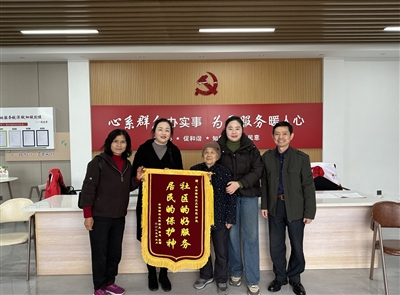 本报讯( 记者 葛利利 通讯员 张喻 金奕晨)3月28日下午,从新疆赶回咸宁的徐忠带着85岁老母亲将一面锦旗送到永安街道北正街社区,感谢社区网格管家“一日三问”专项关爱行动救回独居老母亲。