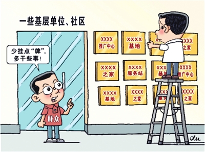 一些部门将发牌视为“工作下沉”的象征,认为“挂牌即落实”,甚至将挂牌数量与考核排名挂钩,大搞“繁琐哲学”,动辄开发出上百项指标,以此下移压力。一些社会组织甚至以“达标创建”之名创收牟利,造成负面影响。