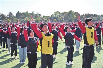 小学课间特色游戏、班级特色运动;初高中课间开展球类、跑操、跳操活动。课间休息,校园里交织着欢笑声、加油喝彩声,所有的成长都在自由舒展。