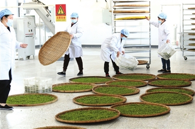 湖北羊楼洞果茶股份有限公司今年新建该茶叶加工中心,进一步提升茶产业生产能力,延长产业链条。该茶叶加工中心不仅采用智能化设备进行茶叶加工,同时保留传统手工制茶工艺,游客可在参观区观看制茶过程,现场品茗。 (记者 陈红菊 特约记者 但唐静)