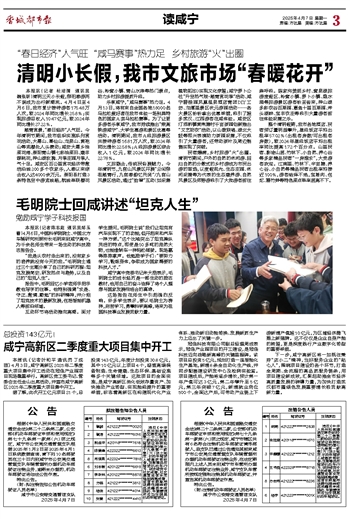 本报讯(记者陈志茹 通讯员郑玉蕾)4月6日,中国科学院院士、中国北方车辆研究所原所长毛明来到咸宁高中,为千余名师生带来一场生动的科技励志报告会。