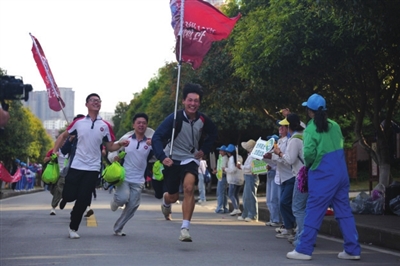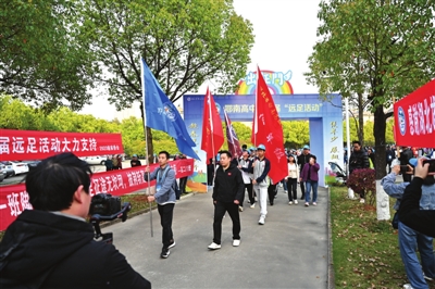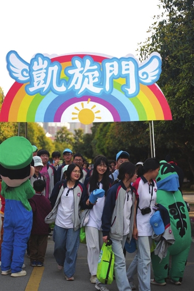 12点半,20公里挑战处,学生们收获了纪念牌。看着家长志愿者们高举头顶的地标公里数,孩子们欢呼。大家纷纷表示,看着家长们热情高涨,自己也被感染,原来30公里的挑战没有想象的那么难。体力不支的学生,在稍事休息后,也纷纷回归队伍。高二(19)班学生郭志杰感慨:“看到爸妈一起来参加徒步,还有那么多志愿者家长精心筹划的惊喜,突然觉得脚步轻快了!”
