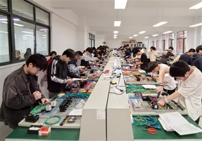 近日,在赤壁职业教育(集团)学校实训楼内,学生们在专业教师的指导下,开展机械、数控、电气工程等实训课程。