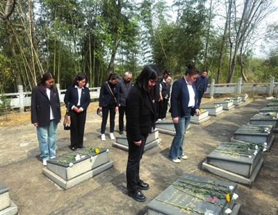 滨河社区的工作人员赴汀泗桥镇中南革命烈士陵园开展清明祭扫主题活动。全体党员在革命烈士纪念碑前庄严肃立,通过集体默哀、敬献花篮、整理挽联等仪式表达崇敬之情。