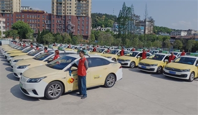 昨日下午,市城顺出租汽车有限公司停车场,35辆出租车一字排开,系上了象征爱心的蓝丝带。据悉,4月13日上午5点到下午2点,城区3家出租车公司100台“蓝丝带”爱心出租车,将为参加咸马的选手提供免费乘车服务。(记者 庞赟 通讯员 张敏)