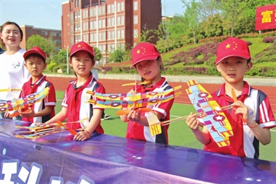 无人机编队表演、AI生成梦想画像、“非遗漆扇”实验室、地震报警器…… 在游园环节中,在主持人的带领下,大家沉浸式地观看了创客工坊、疯狂实验室、生活解密社、科技绘画展、脑力竞技场和科学太空舱等六大展区。其中,由咸宁市实验小学和崇阳县第二实验小学两校学生协作完成的“空气炮实验”“橡筋动力飞机”“干冰秀表演”等科学实验项目,成为当日活动现场最为吸睛的“科技与童心的交响诗”。